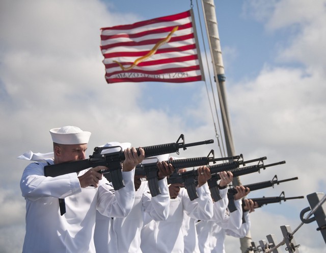 21-gun salute on USS Chung-Hoon (DDG 93).