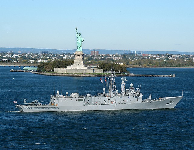 NEW YORK HARBOR: USS Simpson (FFG 56) sails past